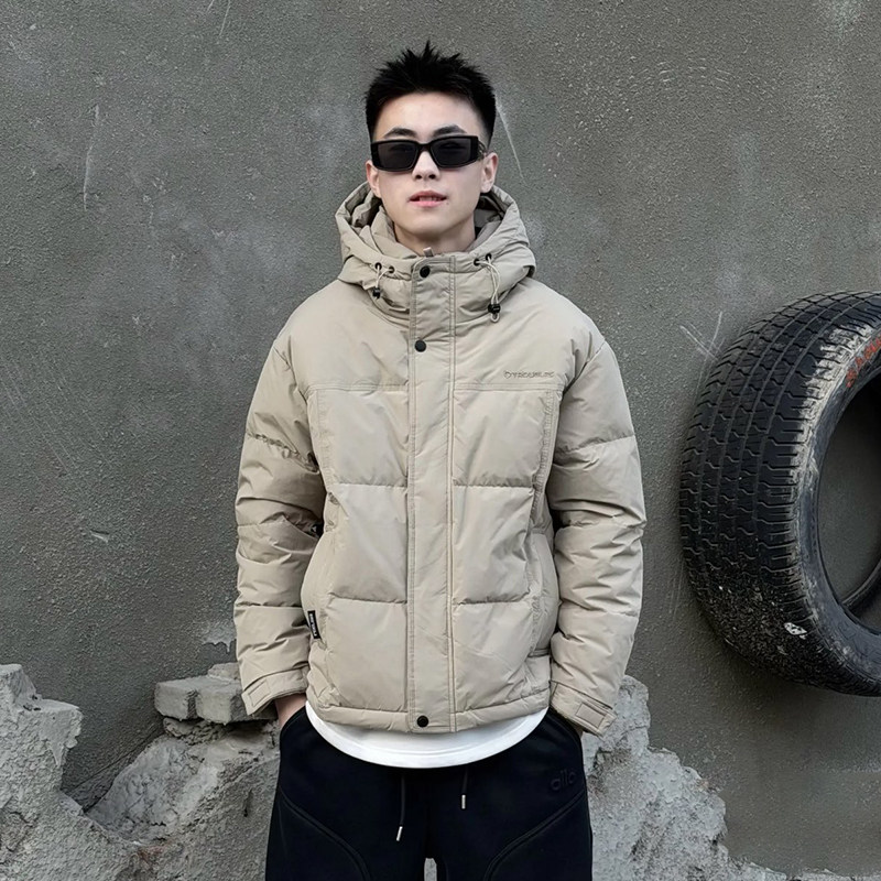 冬装男连帽羽绒服厚实保暖抗风羽绒外套修身潮流简约款青年羽绒服