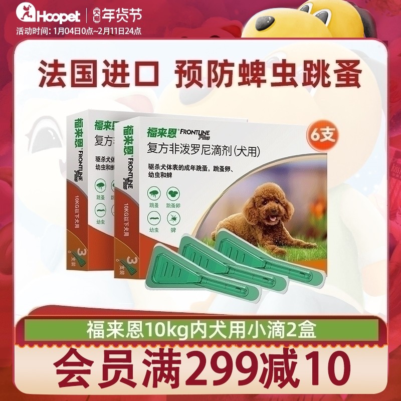 【6支囤货】福来恩体外驱虫药狗狗去跳蚤蜱虫小型犬用两盒福莱恩
