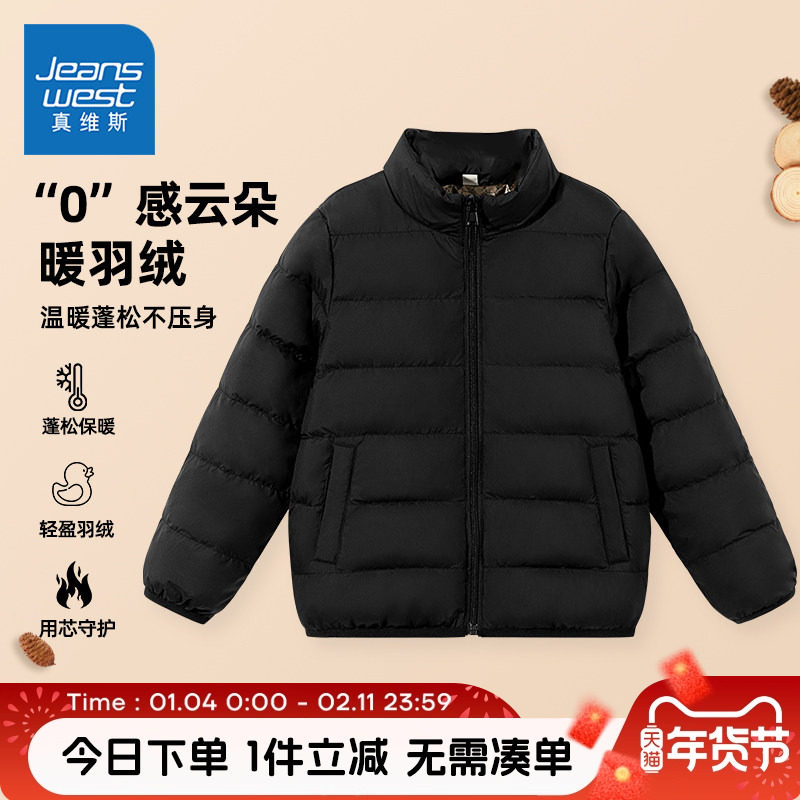 真维斯童装儿童羽绒服男童秋冬款黑色轻薄羽绒衣男大童加绒外套冬