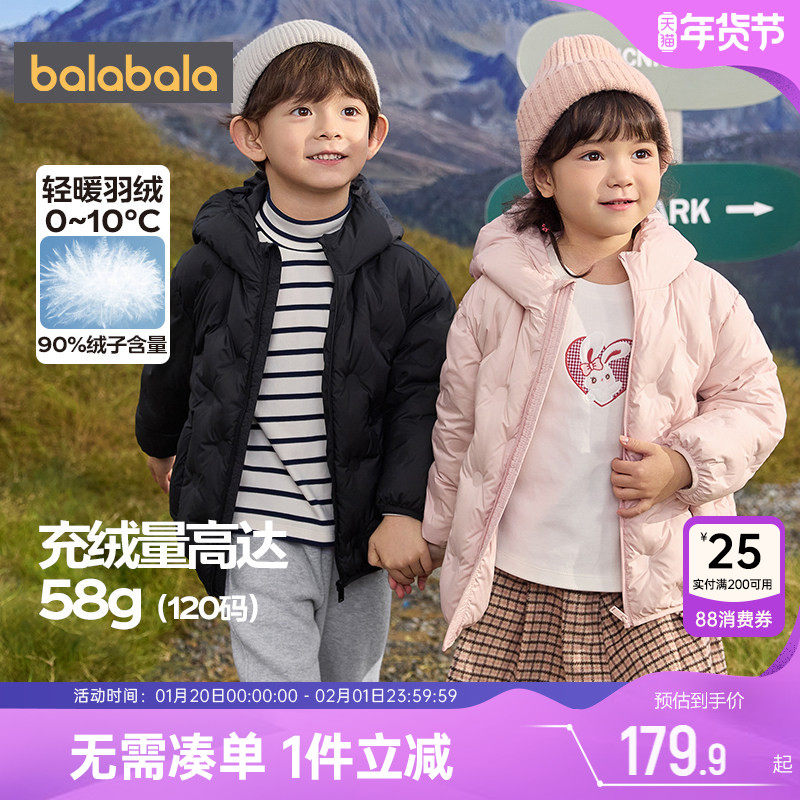 【商场同款】巴拉巴拉儿童羽绒服男童女童轻薄外套秋冬款宝宝上衣