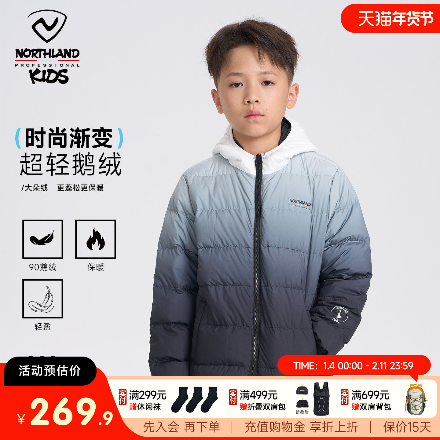 诺诗兰儿童轻薄羽绒服渐变色男童鹅绒服25秋冬款连帽保暖棉服外套