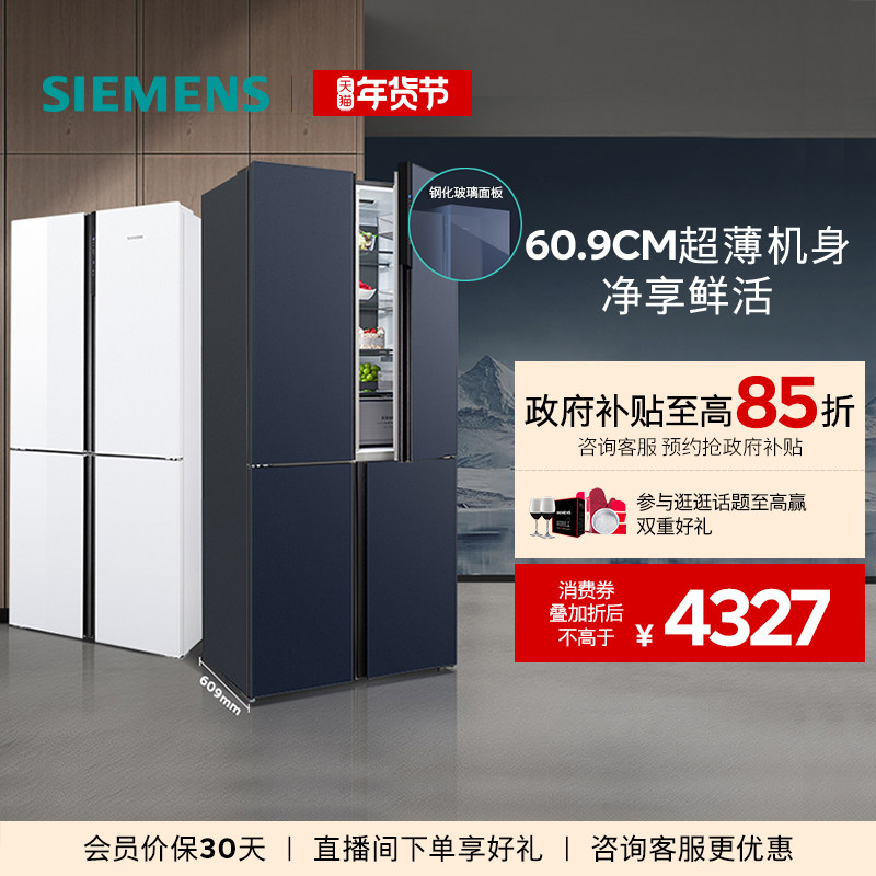 【玻璃面板】西门子无界501L平嵌零嵌法式多门双系统双循环冰箱