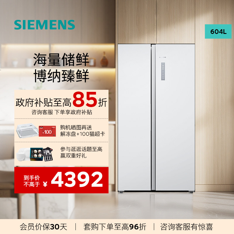 西门子【重磅新品】博纳臻鲜604L双开门大容量冰箱 高效抗菌120C