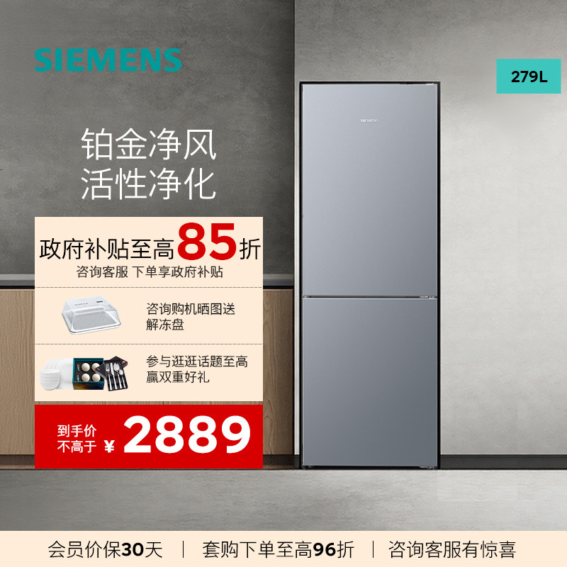 西门子279升风冷无霜双门家用冰箱铂金净风活性净化KG33NV161C