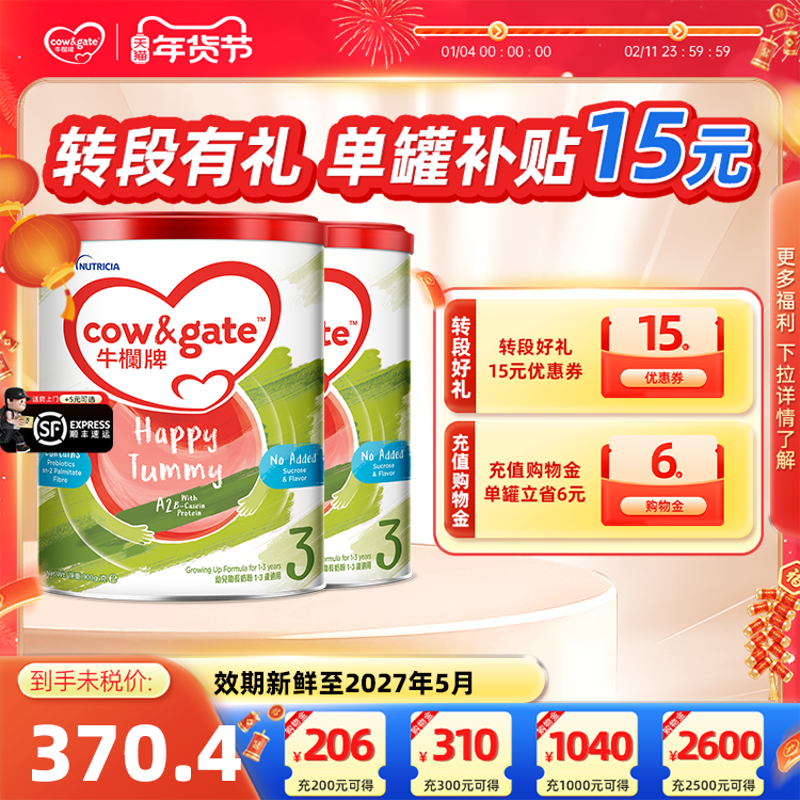 消费券Cow&Gate牛栏牌A2港版牛栏3段900g婴幼儿宝宝牛奶粉1-3岁