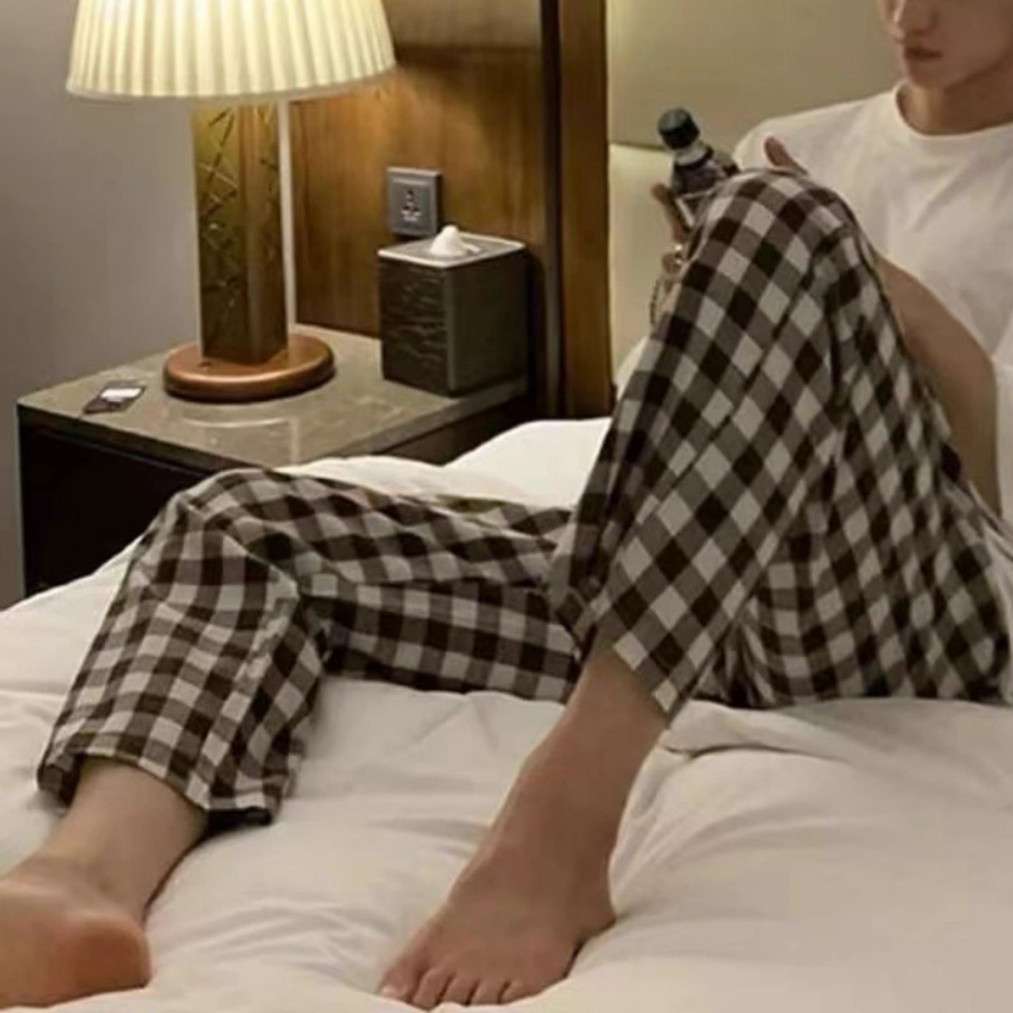 男子运动休闲睡裤宽松透气防尴尬家居裤日式格子春夏居家服可外穿