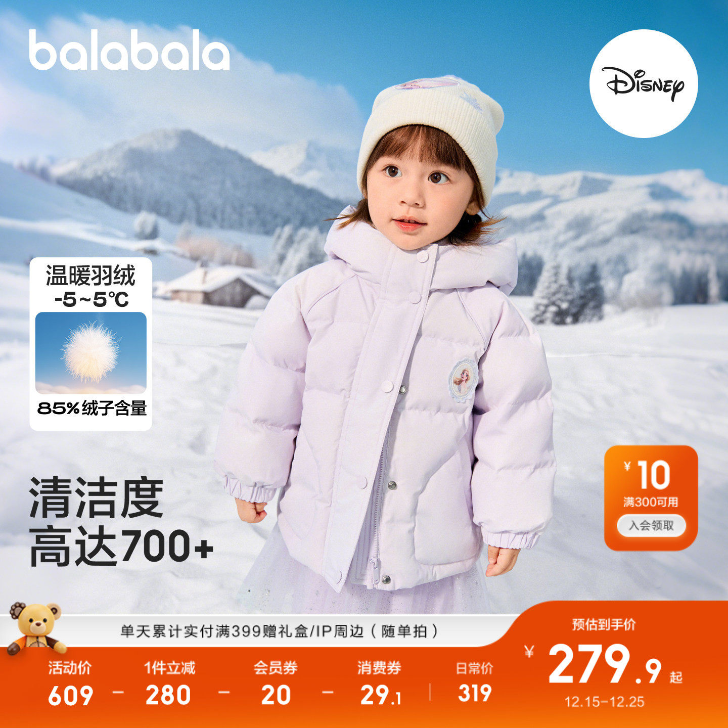 【迪士尼IP】巴拉巴拉童装女童羽绒服2025年新款保暖加厚舒适上衣
