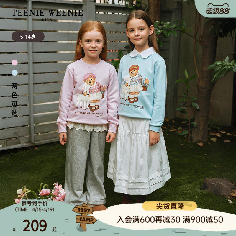 TeenieWeenie Kids小熊童装时尚舒适秋冬季女童印花加绒套头卫衣