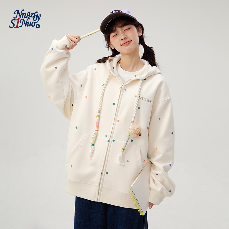 诺诺公主S1N初中生连帽卫衣女2026春季加绒立体小熊圆点拉链外套