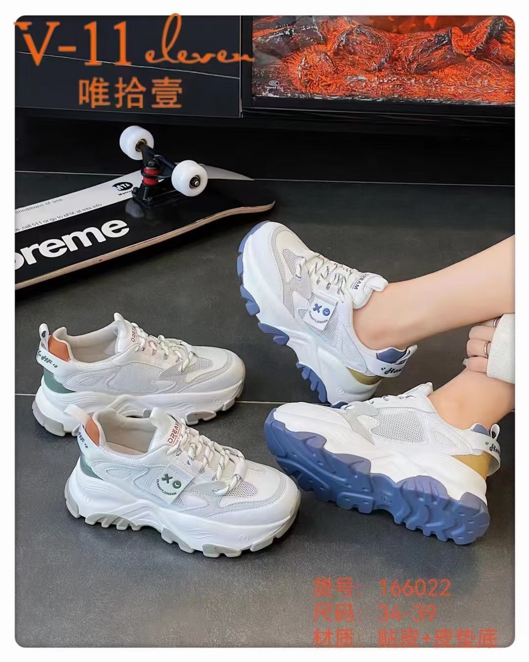 圆头母后V-11时尚女鞋新真皮运动休闲鞋松糕底深口系带韩版单网鞋