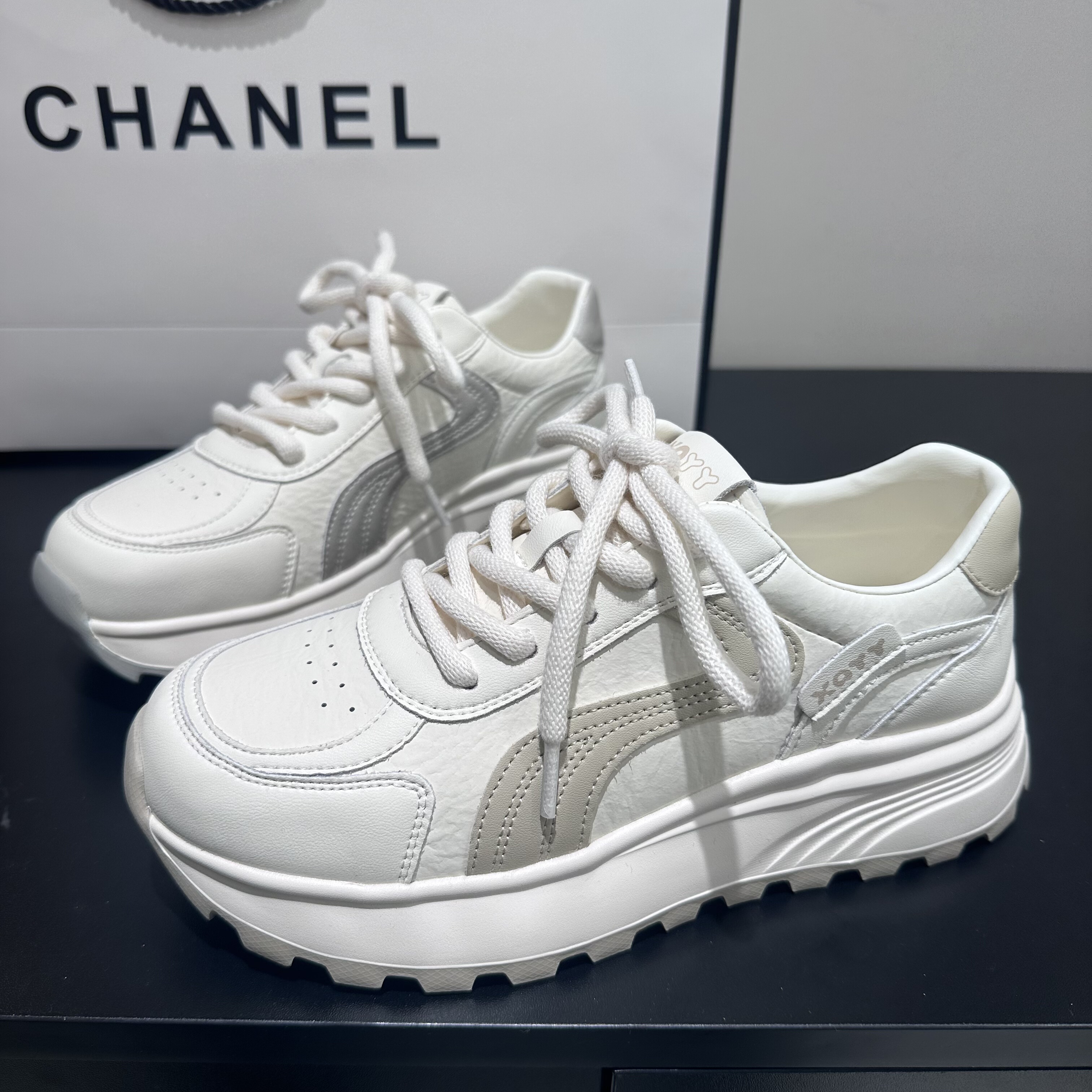 2025春季真皮女鞋百搭系带韩版休闲厚底运动板鞋松糕底牛皮单鞋
