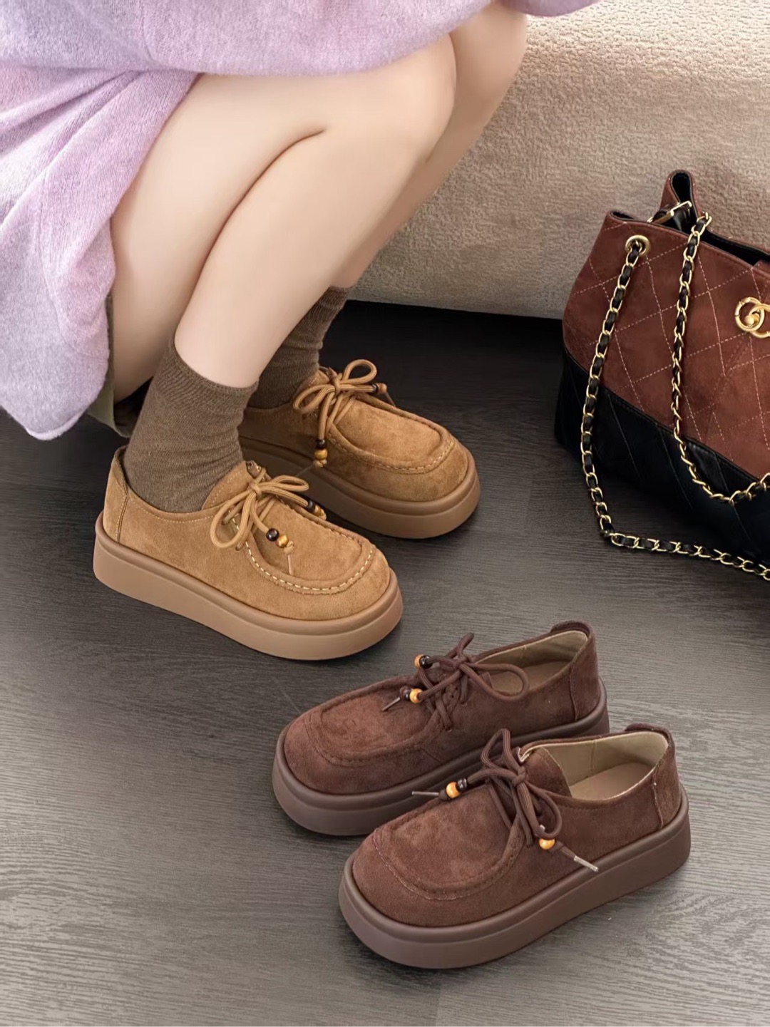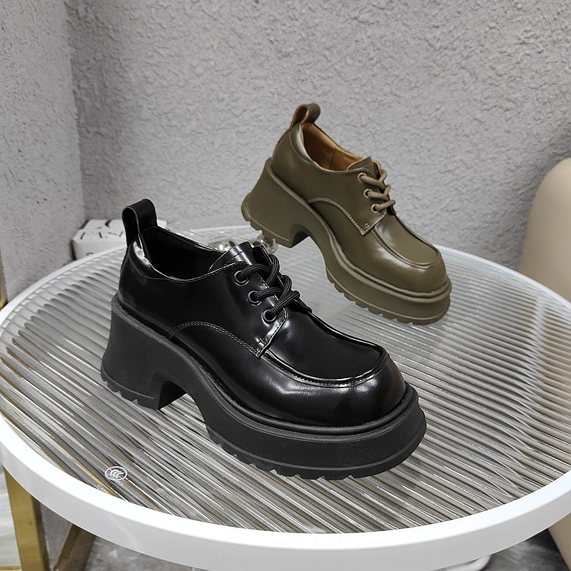 2025秋冬新款松糕底女鞋小皮鞋学生系带厚底复古韩版休闲鞋乐福鞋