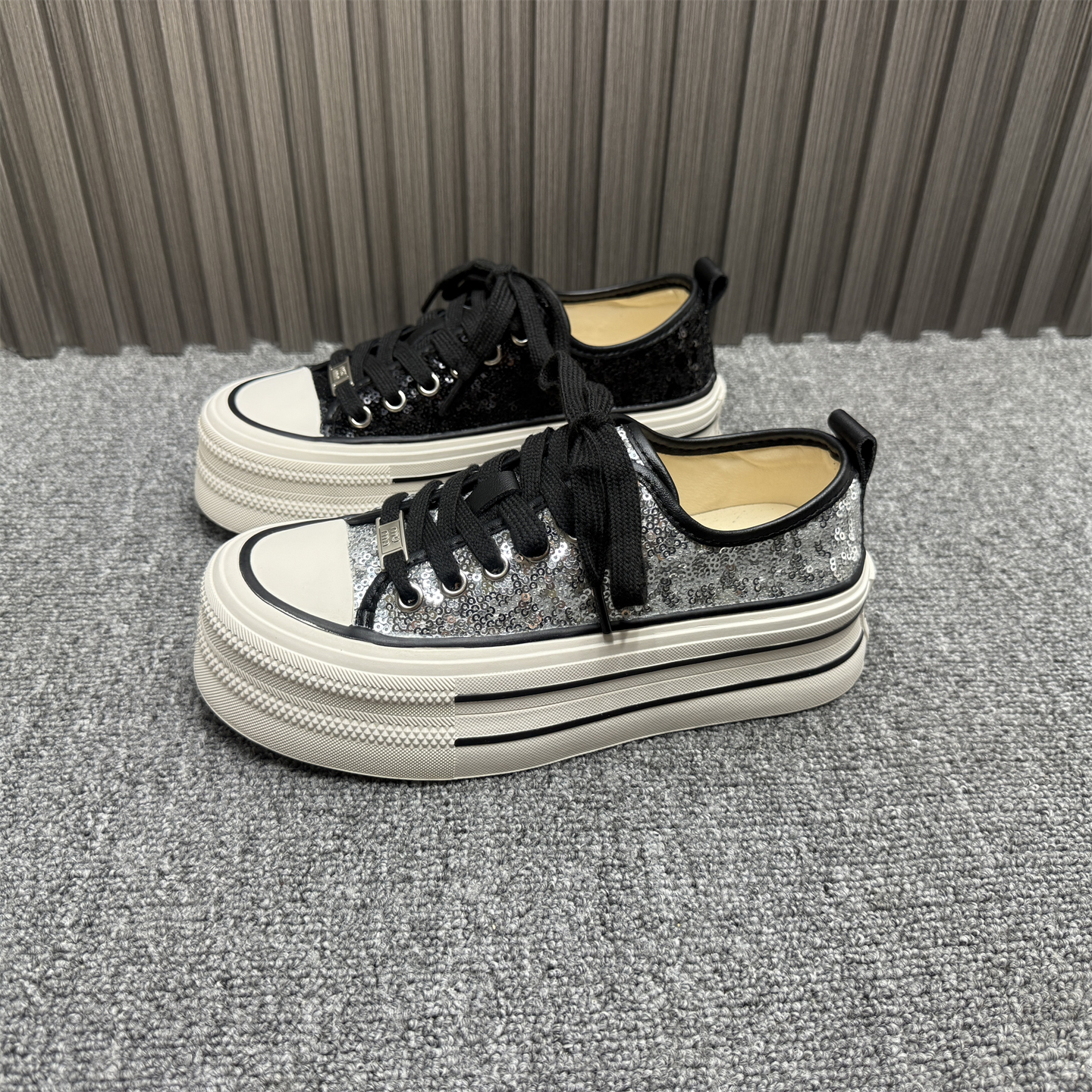 商场处理亮片帆布鞋女春夏新款系带百搭韩版松糕底潮流街拍板鞋女