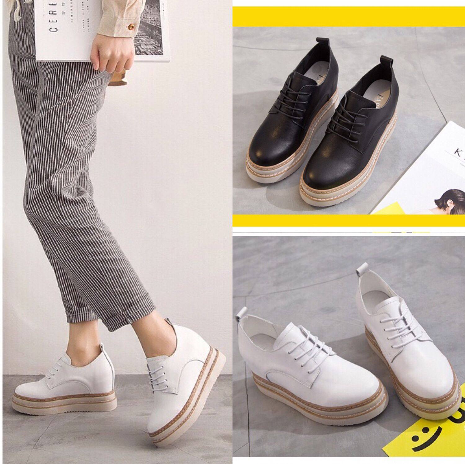 韩版秋季新款女鞋 头层牛皮内增高休闲鞋 松糕底系带百搭板鞋32
