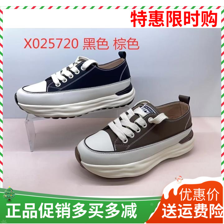 品牌撤柜2025春季新款断码处理真皮女鞋韩版拼色松糕底系带老爹鞋