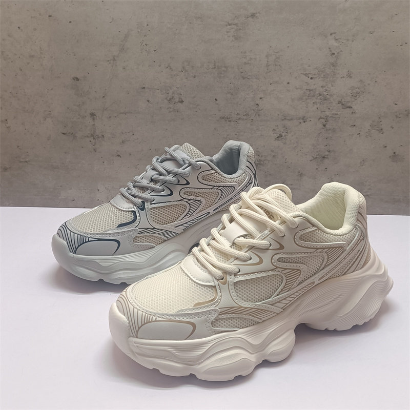 名典24秋新款老爹鞋女鞋韩版系带松糕底网面透气休闲运动鞋77020