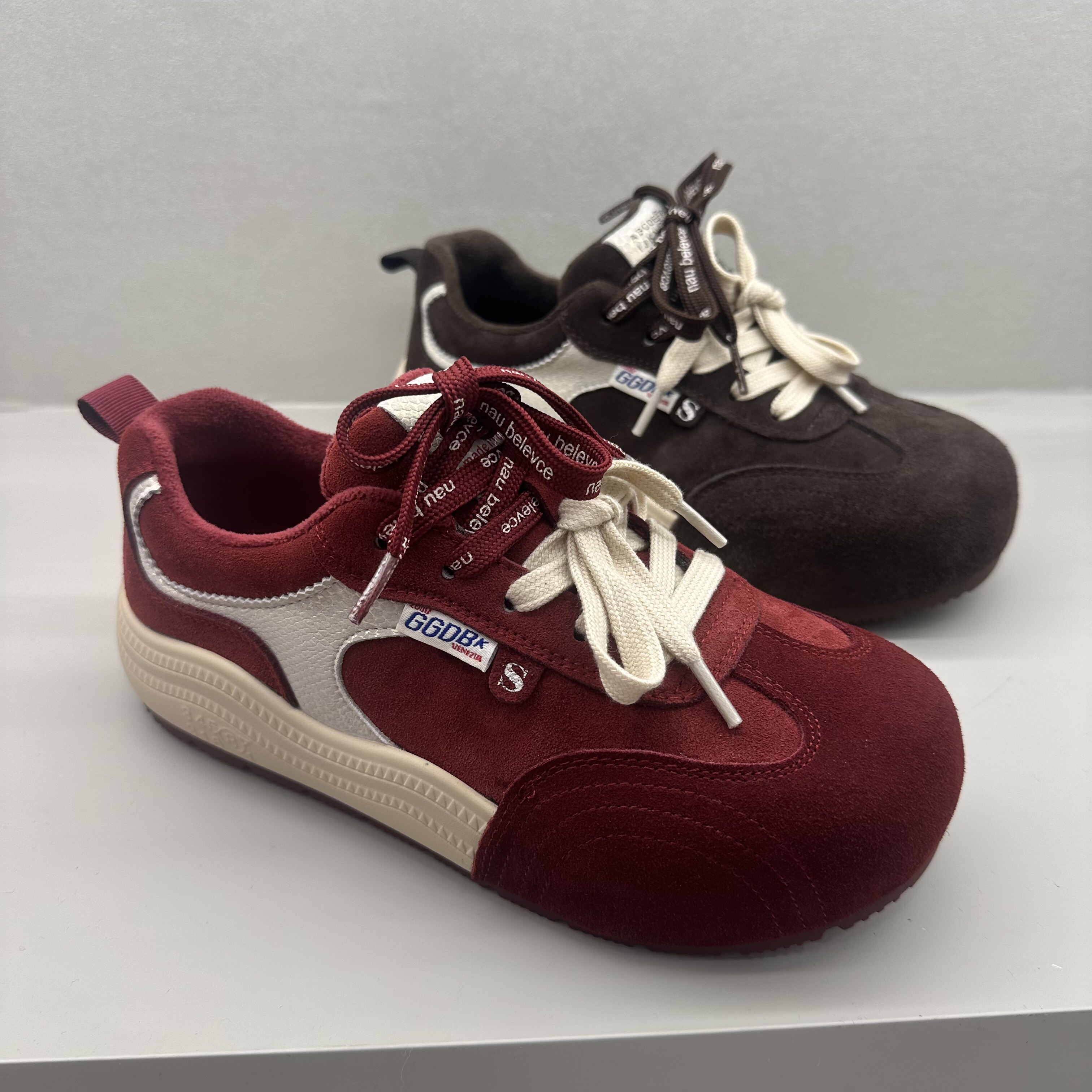 茵茵家韩版真皮系带松糕底德训鞋女2025秋冬新款百搭休闲阿甘鞋潮