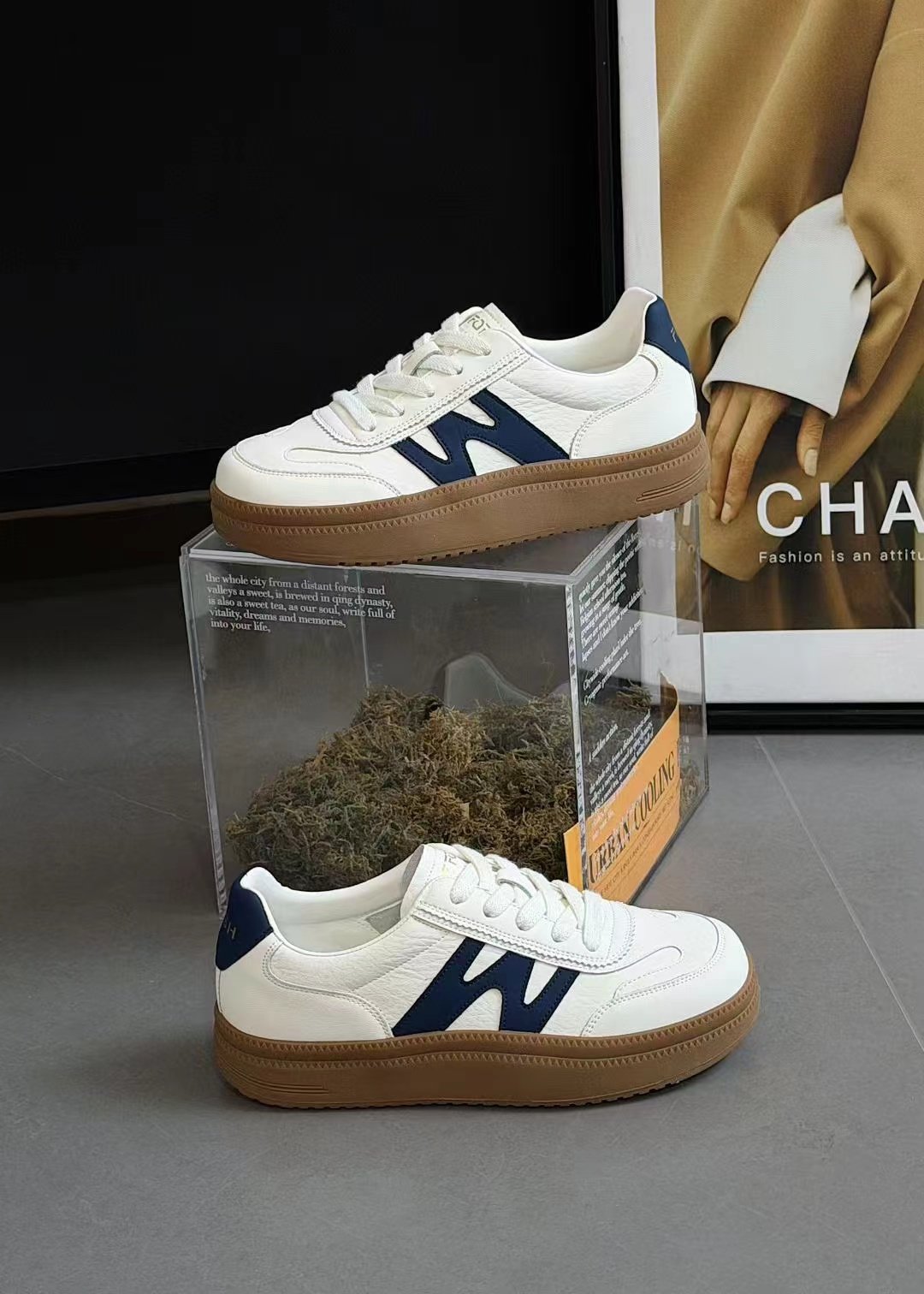 茵茵家2026春秋新款韩版真皮松糕底小白鞋女系带透气休闲圆头板鞋