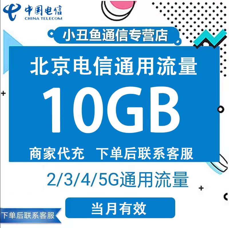 北京电信流量充值10GB当月有效流量包3G/4G/5G国内通用流量叠加包