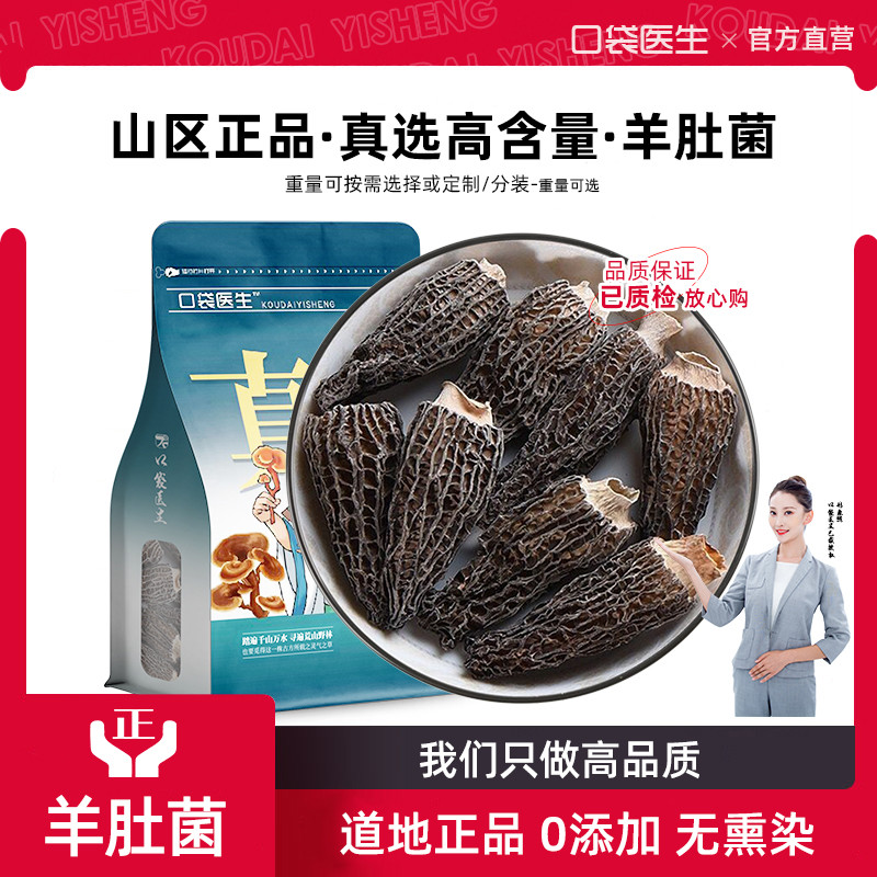 口袋医生_羊肚菌干货500g克 野菌菇煲汤干货旗舰店礼盒生云南菌子
