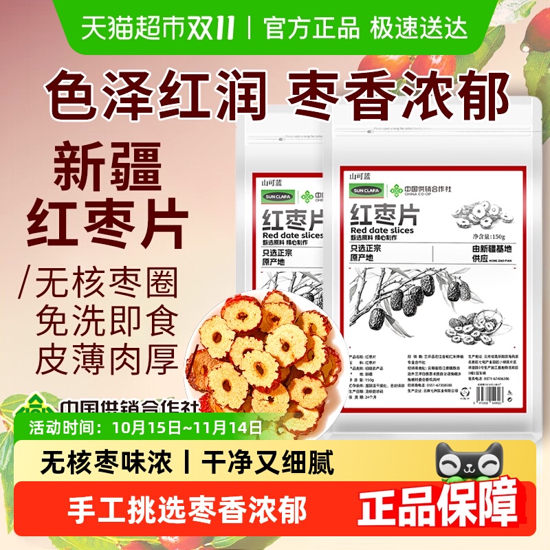 红枣片新疆大枣红枣干特产无核红枣切片即食酥脆枣圈泡水煲汤干货