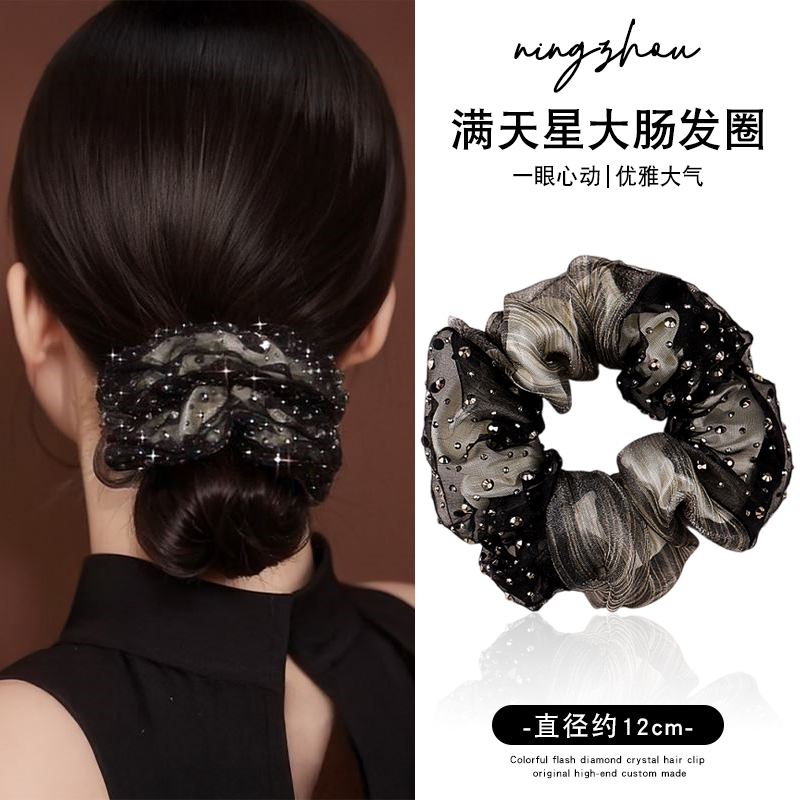 欧根纱妈妈头花大肠发圈女高级感洋气时尚满天星头饰低丸子头发绳