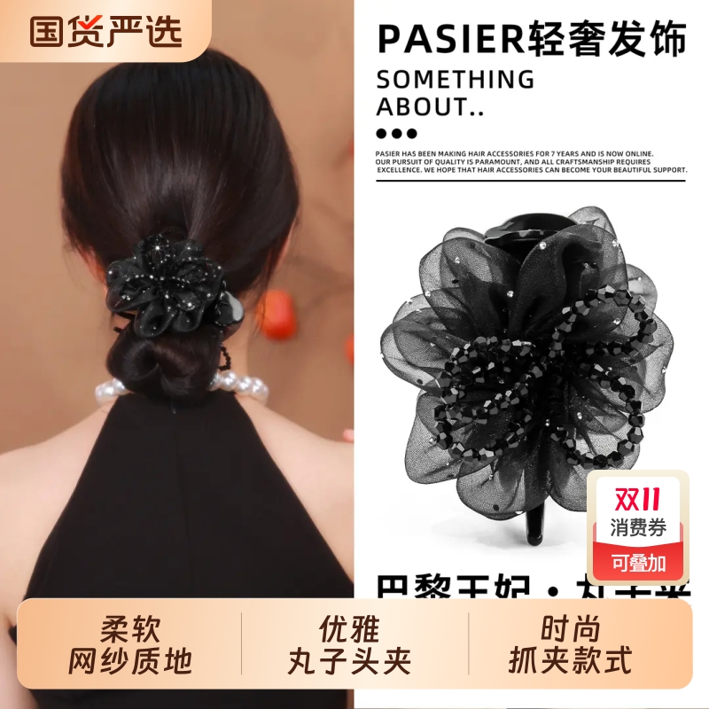 铂思亚花朵发夹女2025新爆款路易斯巴黎王妃丸子夹欧根纱抓夹头饰