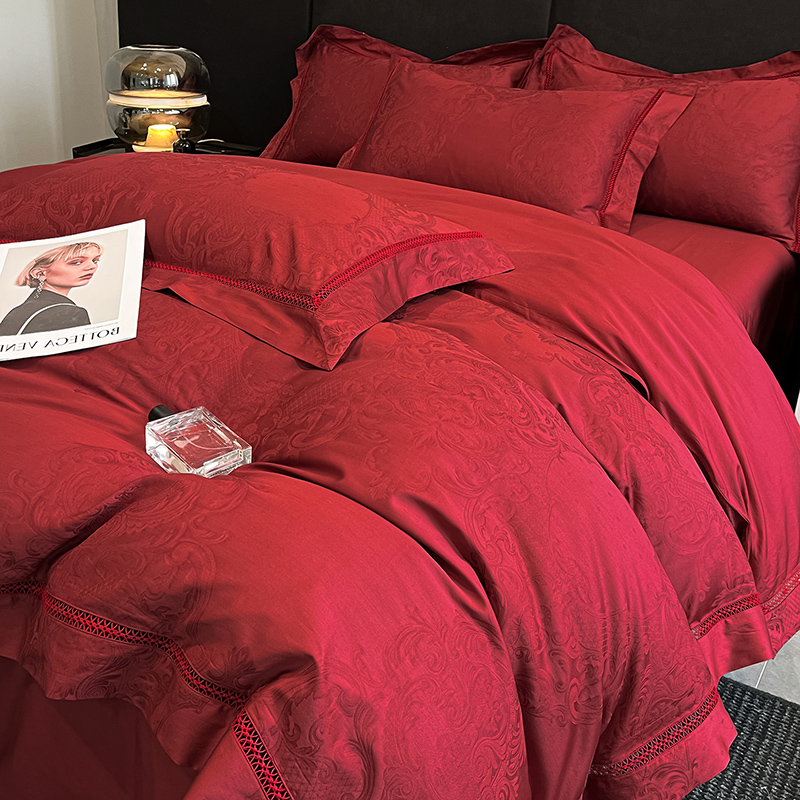 Sandman轻奢结婚四件套大红色提花100支长绒棉婚庆喜嫁高档床品