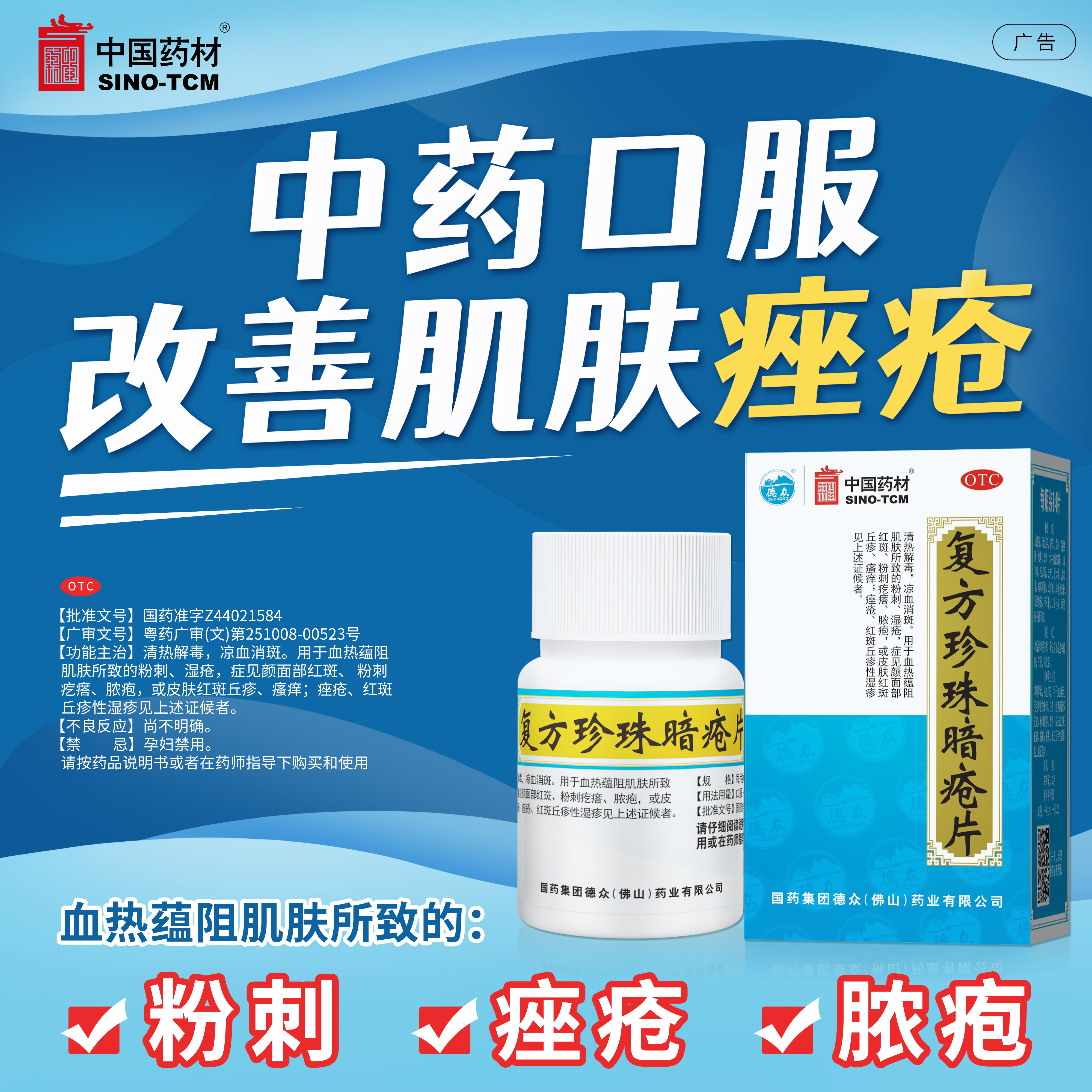 【U先试用】德众复方珍珠暗疮片84片中药祛痘痘痤疮粉刺清热解毒