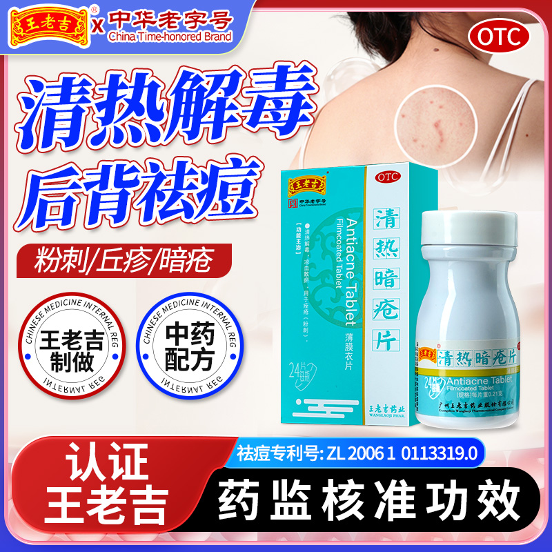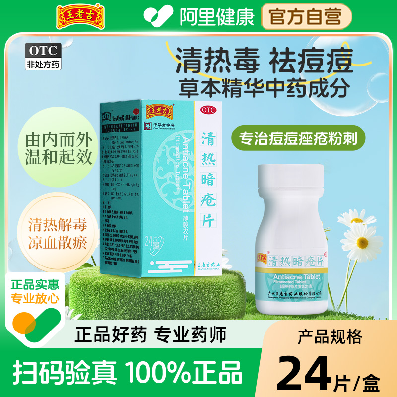 24片/盒 正品王老吉清热暗疮片清热解毒痘痘粉刺痤疮中药内调祛痘