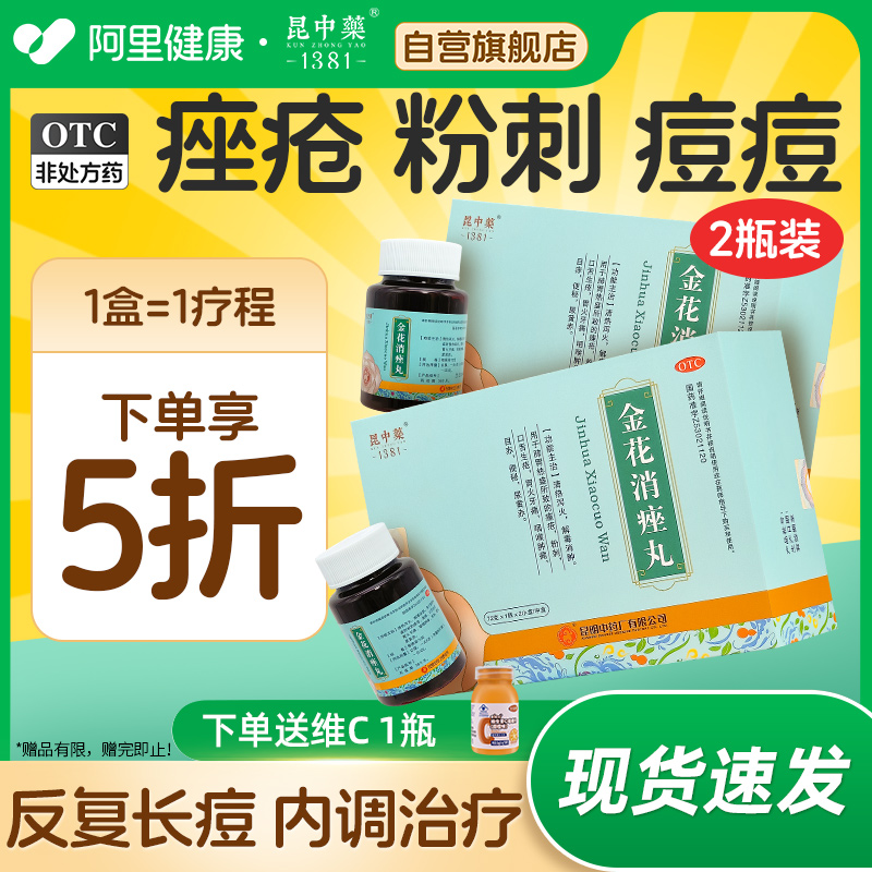 昆中药金花消痤丸2瓶装中药祛痘痘解毒痤疮粉刺正品旗舰店非颗粒