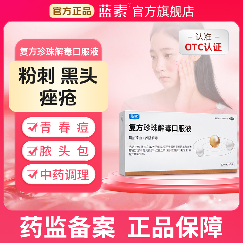 蓝素复方珍珠解毒口服液9支装清热凉血养阴解毒祛痘粉刺中药调理