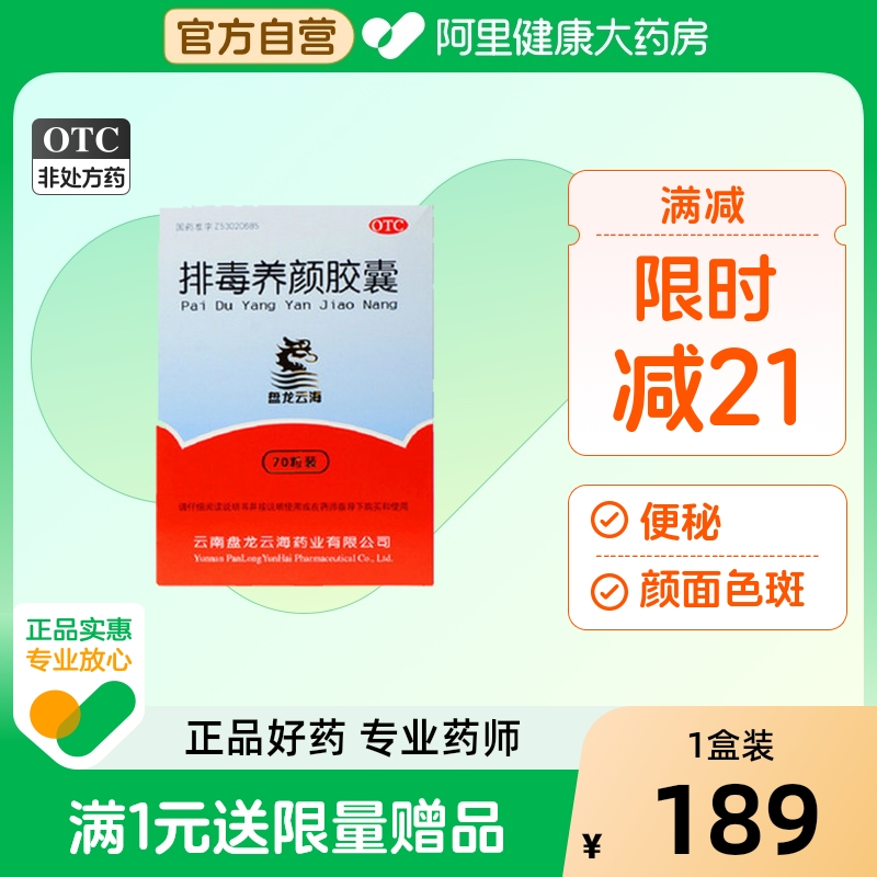 阿里自营盘龙云海排毒养颜胶囊90粒/盒中药内调祛痘淡色斑通便