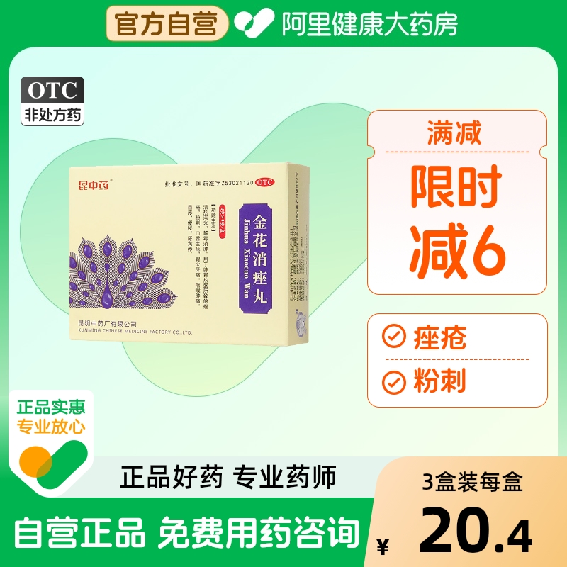 昆中药金花消痤丸昆明中药厂丸剂正品颗粒解毒口服液祛痘痤疮复方
