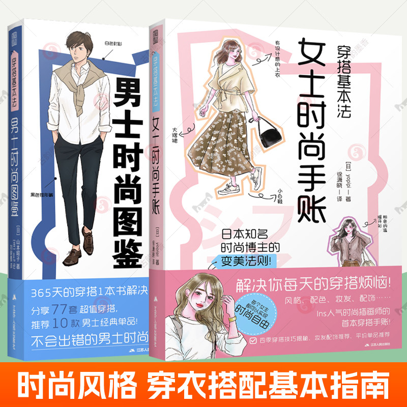 穿搭基本法全2册 女士时尚手账+男士时尚图鉴 服装搭配书籍如何穿衣入门书 穿衣打份女人女士着装搭配技巧时尚服装服饰衣服搭配书
