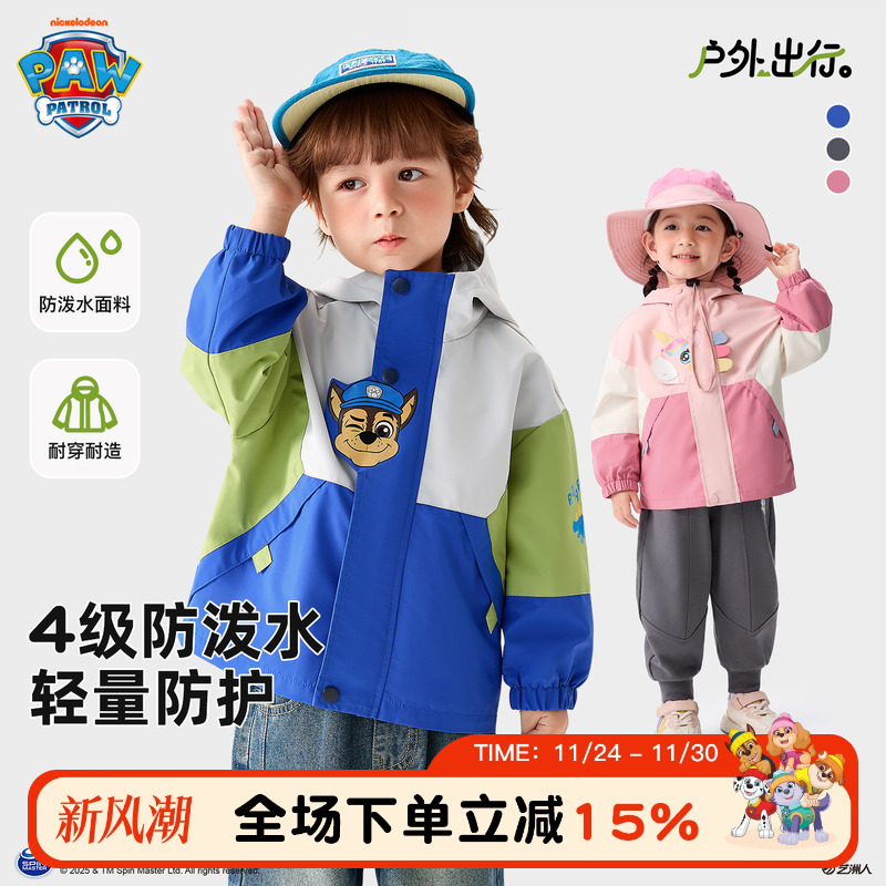 汪汪队男童冲锋衣类型外套春秋儿童外套女童宝宝户外服秋冬三合一