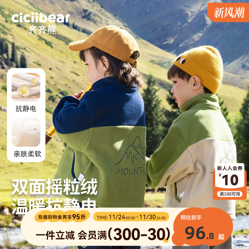 【抗静电】齐齐熊宝宝摇粒绒外套春秋男童上衣儿童抓绒衣户外运动