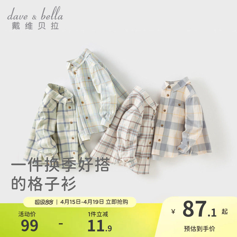 戴维贝拉男童衬衫2026春装新款儿童外套格子宝宝长袖衬衣上衣童装