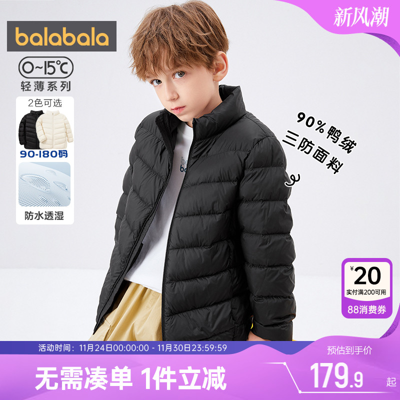 巴拉巴拉儿童羽绒服三防轻薄外套男童女童装2025新款冬装宝宝上衣