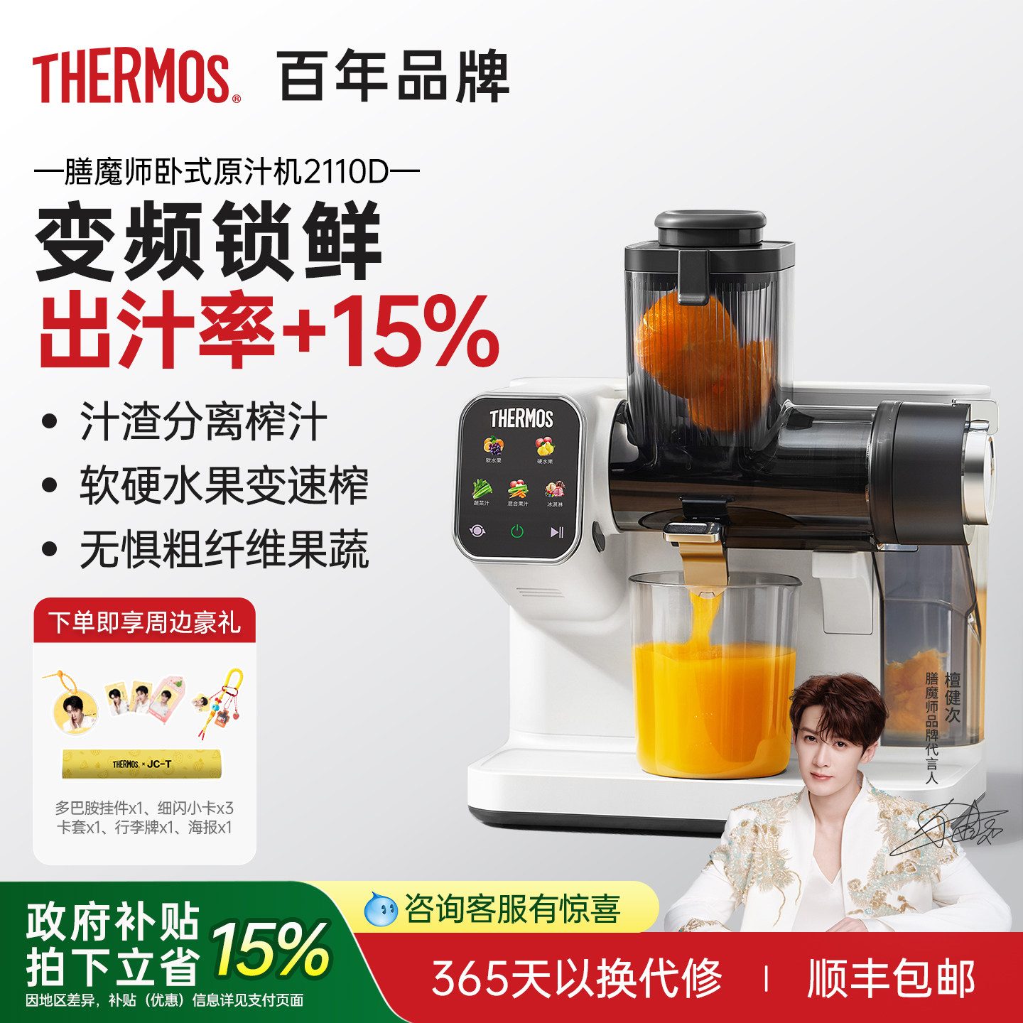 膳魔师全能榨原汁机旗舰变频渣汁分离家用果蔬大口径26新款榨汁机