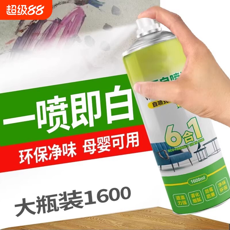 墙面自喷漆白色乳胶漆补墙膏粉刷家用修复喷墙漆修补白色去污神器