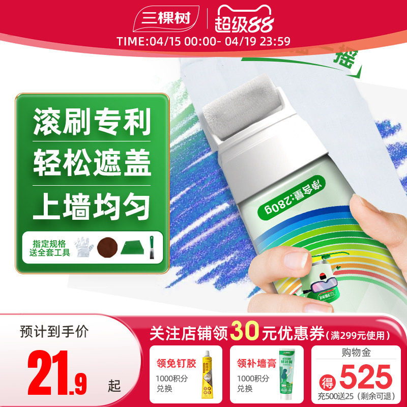 三棵树补墙漆乳胶漆白色墙面修复自喷漆白墙自刷神器修补膏滚筒漆
