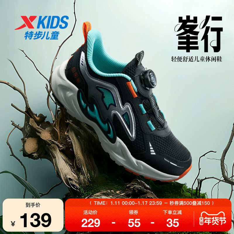 特步童鞋春季款透气网布学生运动儿童鞋中大童男鞋防滑耐磨跑步鞋