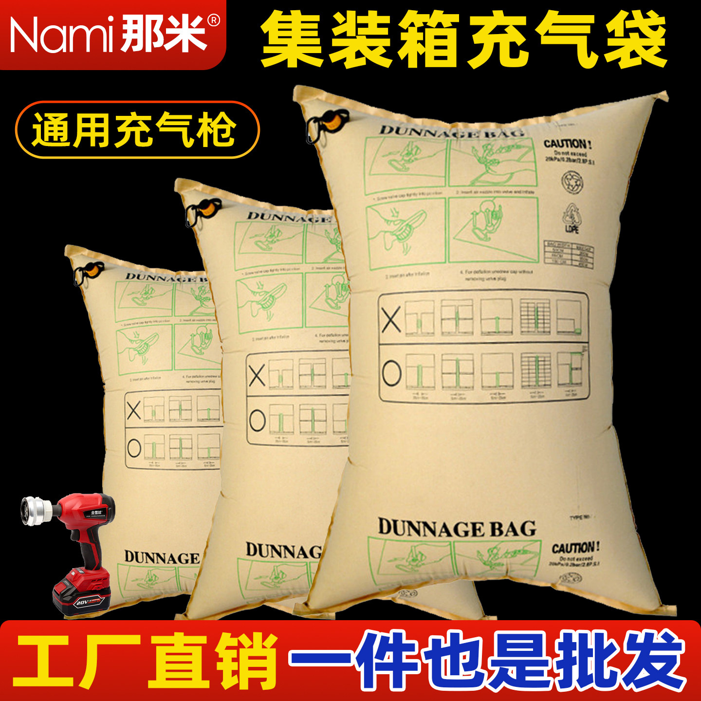 集装箱充气袋气囊袋托盘打包大气阀充气枪包装货车货物防撞填缓冲