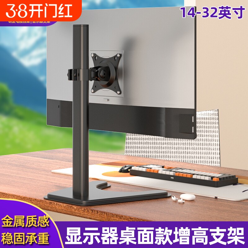 14-32寸显示器底座桌面免打孔电脑升降支架横竖屏旋转适配aoc戴尔