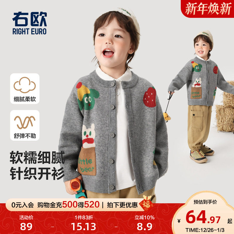 右欧男童针织开衫卡通动漫女童儿童毛衣外套百搭春秋冬季新款童装