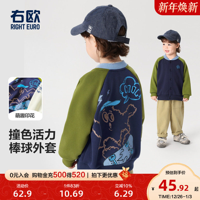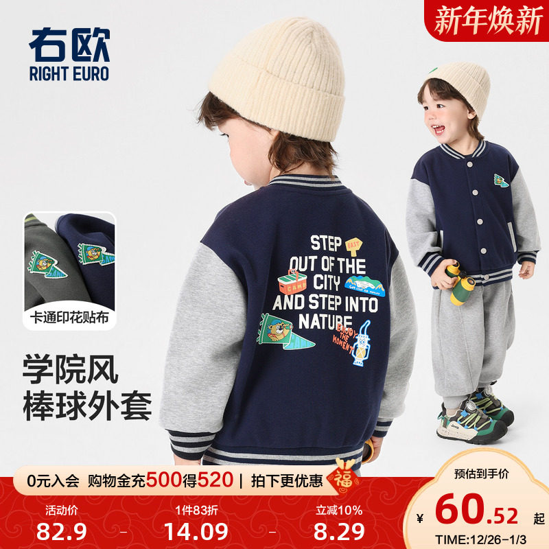 右欧儿童棒球服外套卡通动漫冬季新款童装男童女童厚款休闲风棉衣