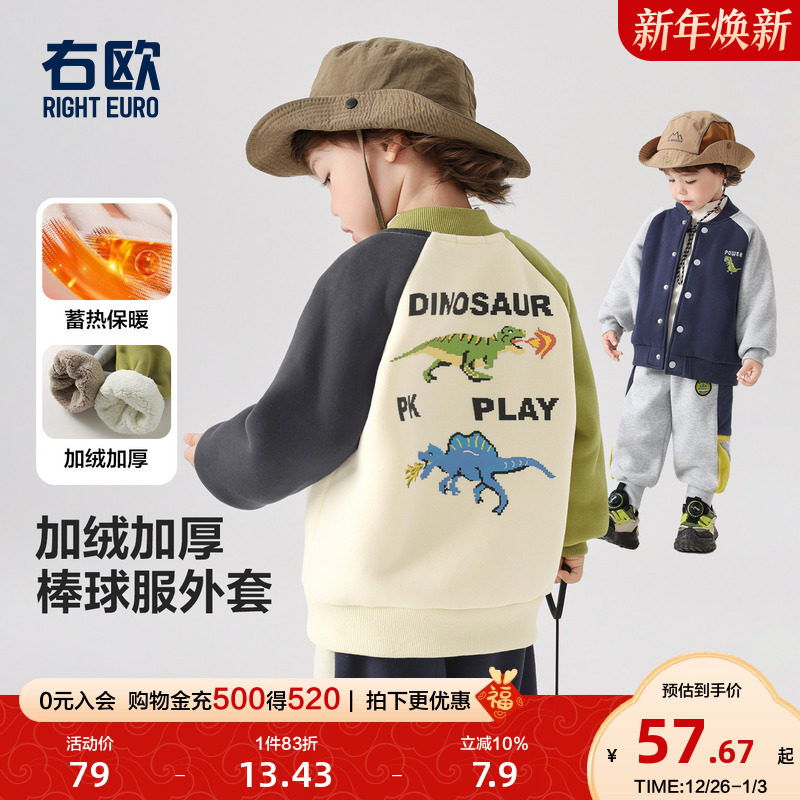 右欧男童女童加绒棒球服外套洋气秋冬季新款童装儿童卡通动漫上衣