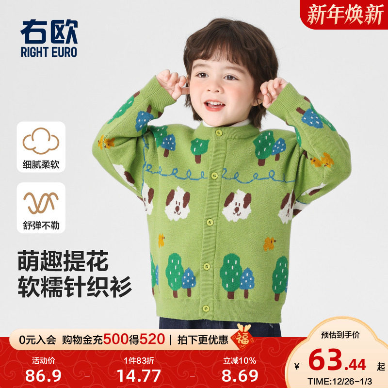 右欧男童女童毛衣外套卡通动漫儿童针织开衫提花春秋冬季新款童装
