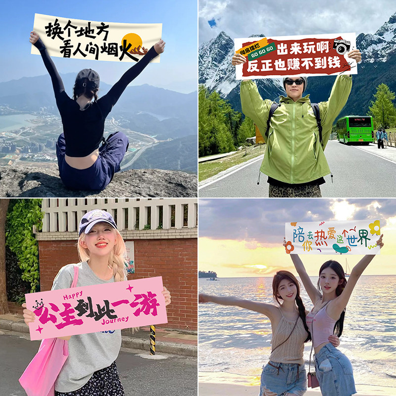 暑假期毕业旅行户外海边拍照道具定制手持小横幅爬山行团建氛围感